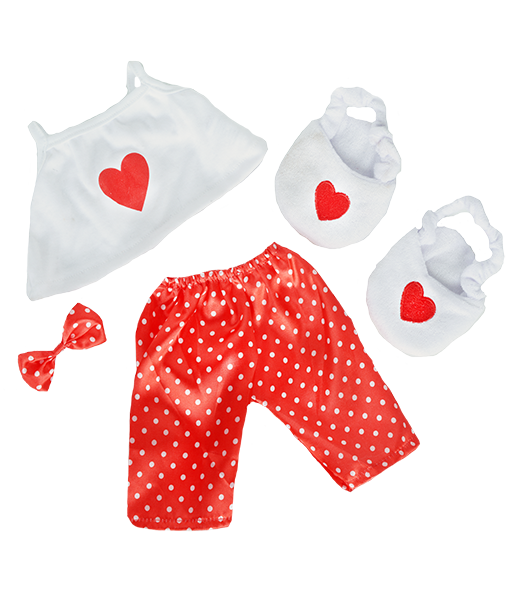 💖 Satin Heart Pajamas & Slippers – Stylish and cozy outfit for bedtime or display.