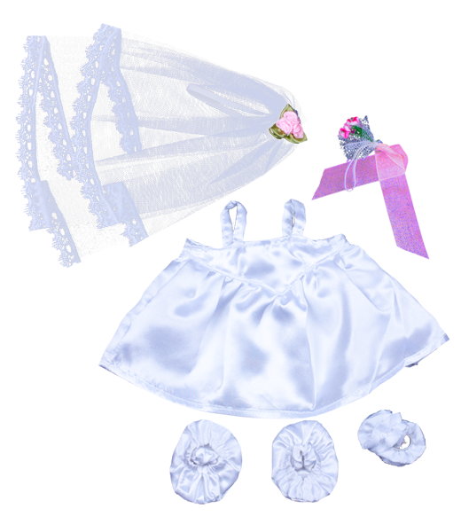 Bridal Design: Brown Bear 8 Inch dressed as a bride, complete with veil and bouquet.