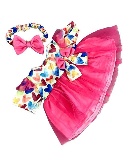 👗 Pink Heart Dress & Headband – Stylish, themed outfit adds charm and personality to the bear.