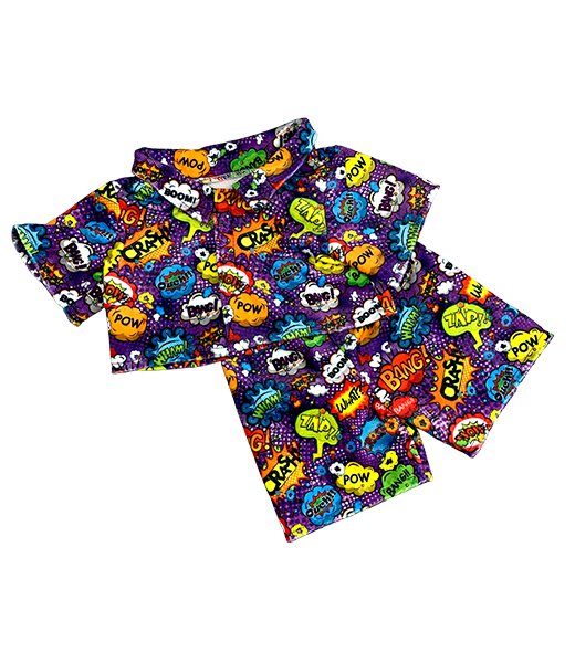 👕 Purple Superhero Pajamas – Eye-catching outfit encourages imaginative play and adds fun style.