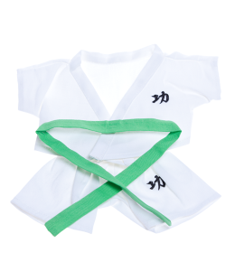 8-inch brown bear plush wearing a karate outfit with 5 color belts.