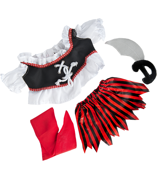🧸 Adventure-Themed Plush – Brown bear plush dressed in a pirate girl costume with matching toy sword for a fun, adventurous look.