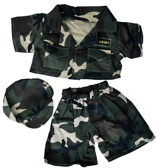 Brown Patches Bear 8 Inch Plush with Army Green Outfit & Hat