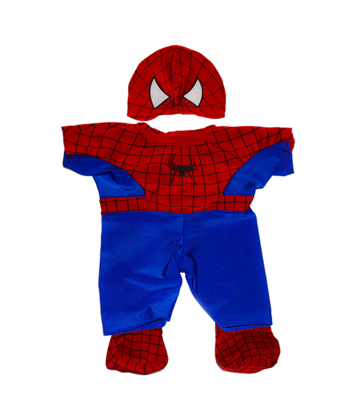8-inch Brown Patches Bear wearing a detailed Spidey teddy costume