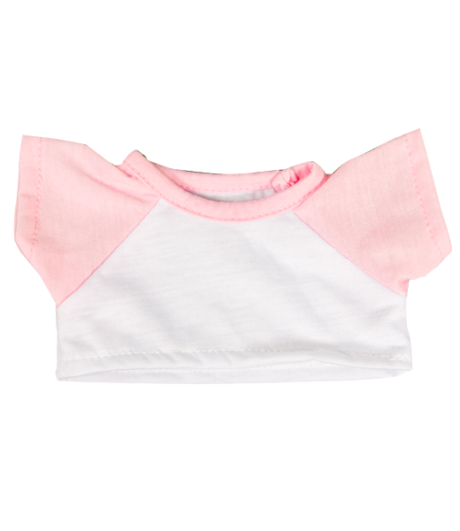 8-inch Brown Patches Bear dressed in a white tee with light pink sleeves
