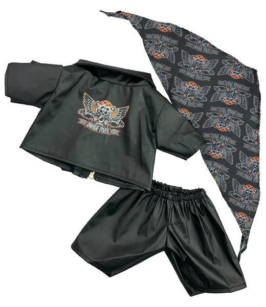 Meet the Brown Patches Bear (8") dressed in the Biker "King of the Road" outfit (8"), a soft and cuddly plush companion with a bold, adventurous style. Perfect for playtime, display, or gifting, this 8-inch bear combines cozy comfort with a fun biker-themed outfit that adds personality and attitude. Ideal for children, collectors, or anyone who loves unique stuffed animals.